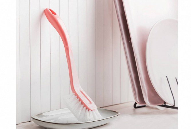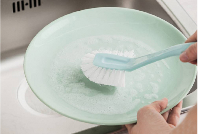 • щетина средней жесткости отлично удаляет присохшие остатки пищи с посуды и кухонной утвари.