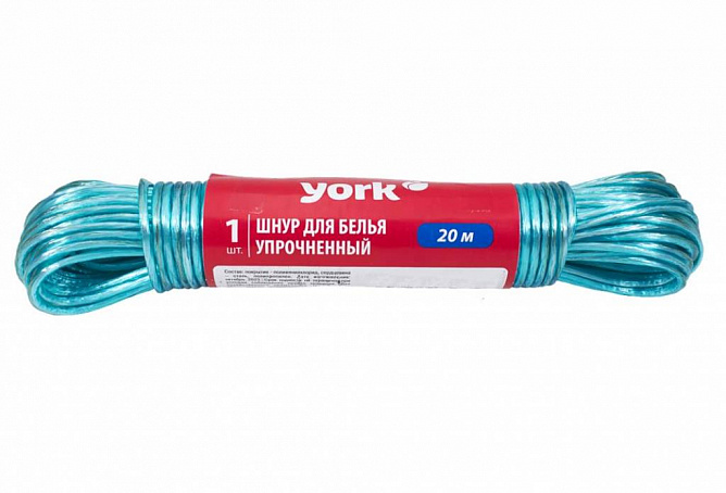 Шнур (веревка) для белья упрочненный YORK длиной 20 метров представляет собой надежное и прочное решение для сушки белья и других текстильных изделий. Изготовленный из высококачественного материала, этот шнур обладает отличной прочностью и устойчивостью к воздействию внешних факторов, таких как ультрафиолетовые лучи и атмосферные осадки. Упрочненная структура веревки обеспечивает долгий срок службы и надежность даже при интенсивной эксплуатации.