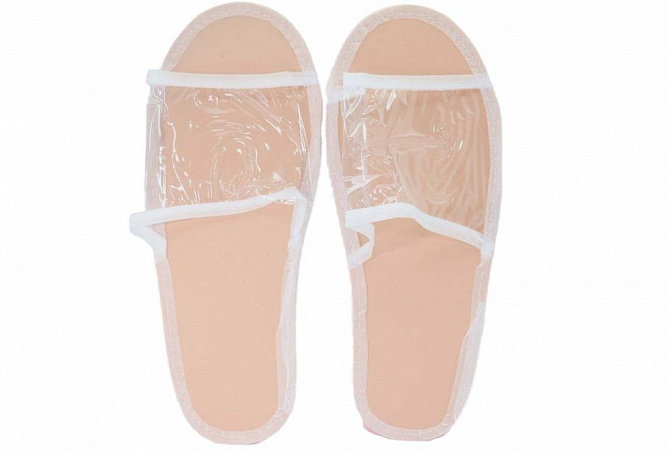 Тапочки «Водолей» одноразовые цвет бело-бежевый пара с открытым мысом и нескользящей подошвой обладают аккуратными швами, прошитыми плотной ниткой. Верхняя часть тапочка также прошита с двух сторон, что значительно увеличивает его прочность и позволяет носить тапочки долгое время без повреждений. Эта одноразовая обувь идеально подходит для путешествий или для предложения гостям.