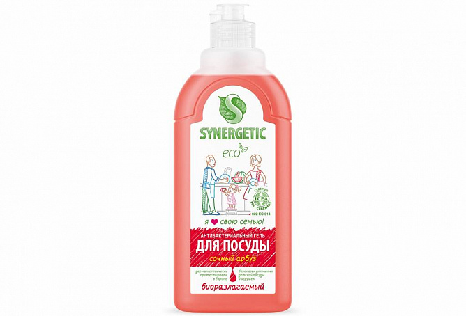 Биоразлагаемый концентрированный гель для посуды с антибактериальным эффектом SYNERGETIC - это экологичное, безопасное и эффективное средство для мытья всех видов посуды, в том числе детской, кухонного инвентаря и детских игрушек от любых видов загрязнений. Он не оставляет следов на посуде.