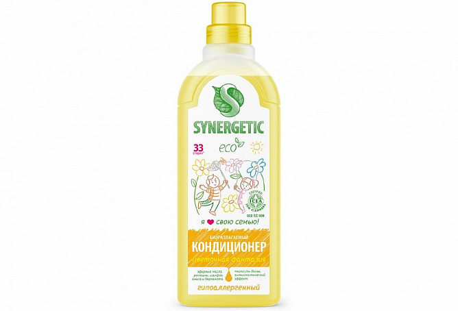 Биоразлагаемый кондиционер-ополаскиватель для белья SYNERGETIC "Цветочная фантазия" – высокоэффективное средство, бережно ухаживающее за всеми типами ткани, в том числе деликатными, и придающее особую мягкость и нежность белью после стирки.