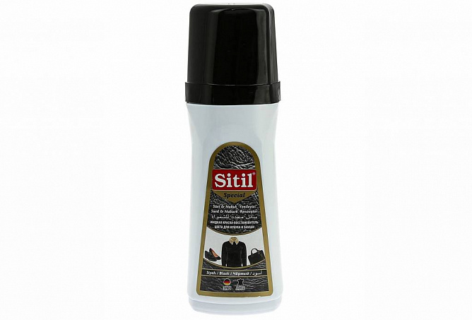 Жидкая краска-восстановитель для замши и нубука Sitil – специально разработанный продукт, который обеспечит сохранность деликатных материалов и продлит их срок службы. Краска-восстановитель деликатно проникает в поры, обновляет цвет, делает его более насыщенным и равномерным. Обеспечивает дополнительную защиту материалов от влаги и истирания.