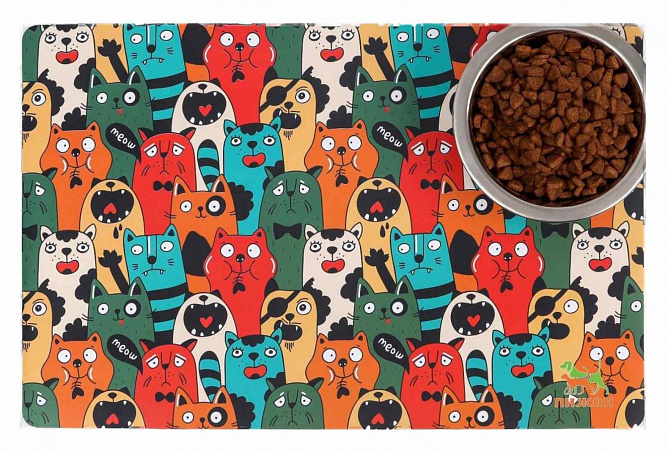 Коврик под миску для животных Пижон с нескользящим основанием 43 х 28 см Голодные коты арт. 6249024