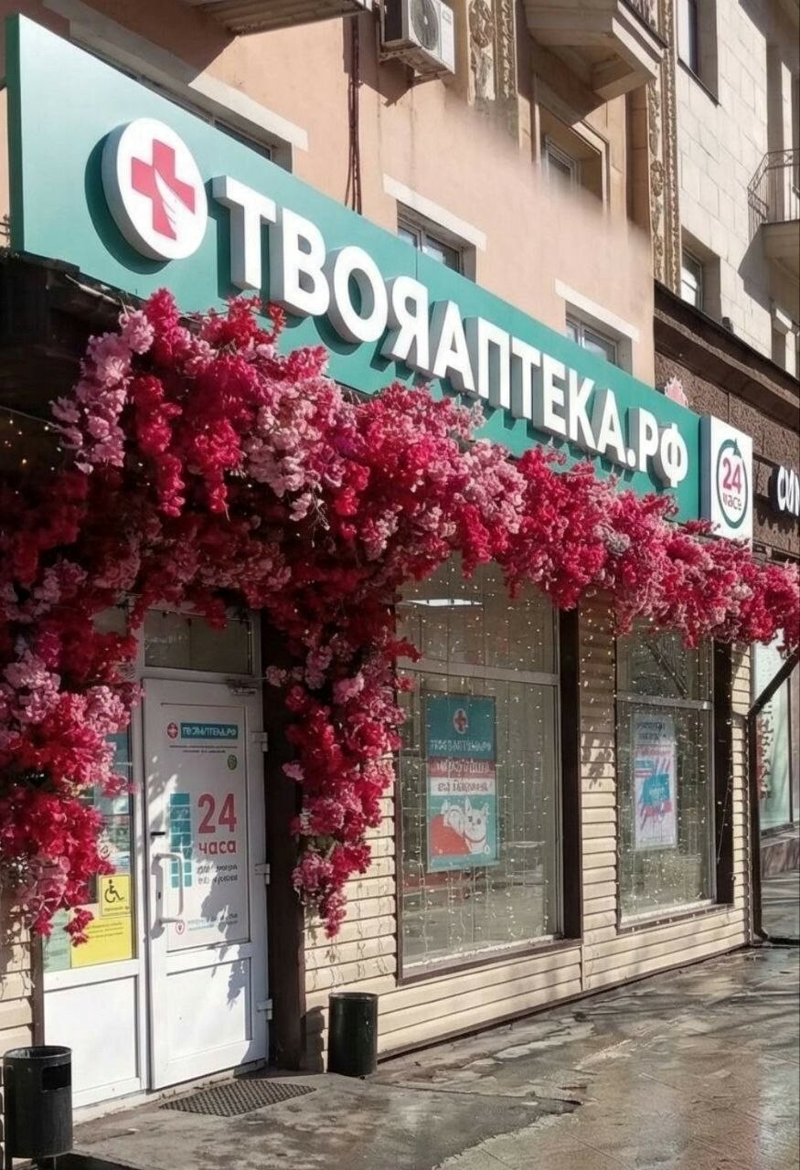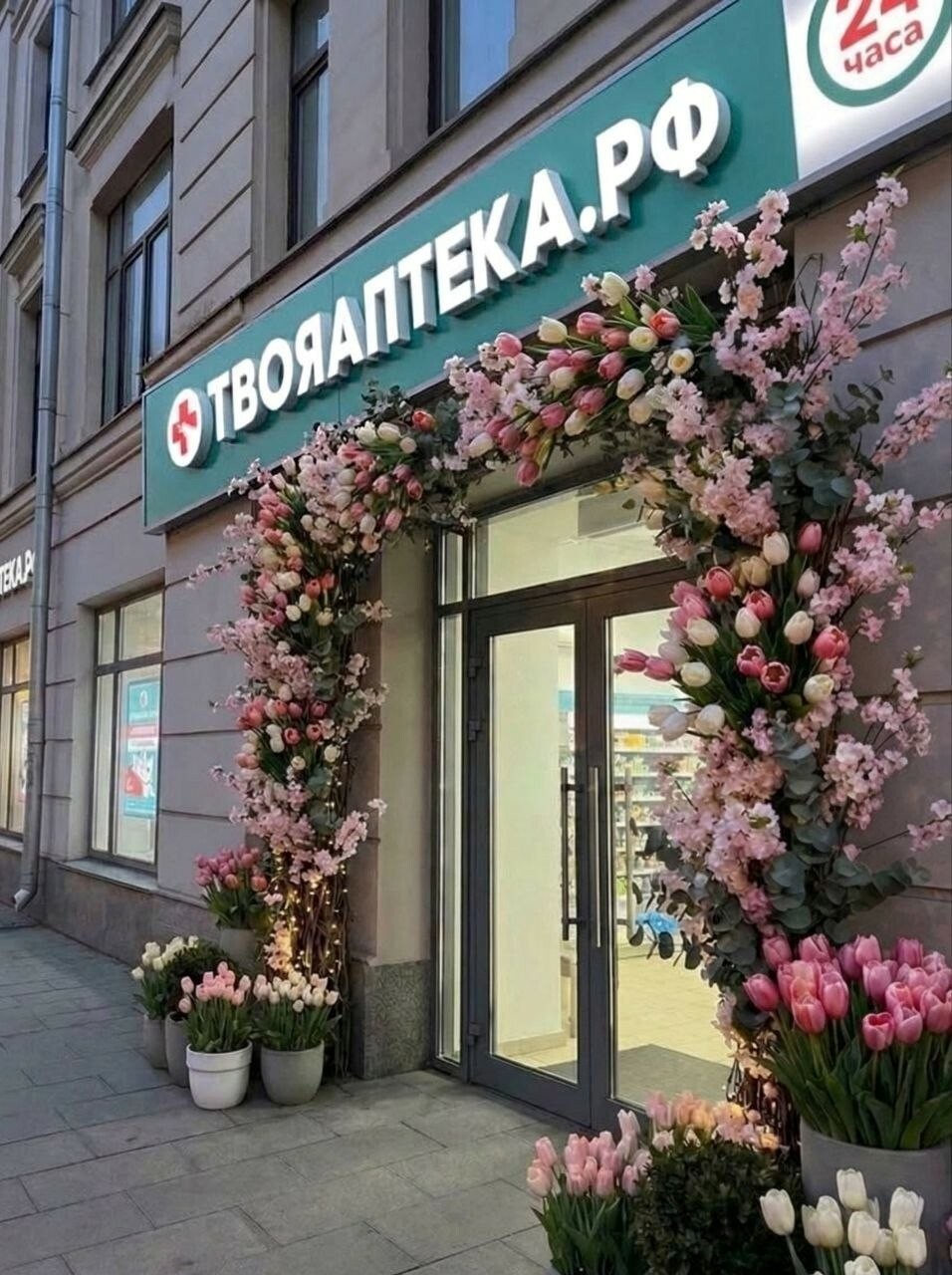 В этом сезоне крупные дальневосточные сети – «Твоя Аптека», «Социальная Аптека» и «Семейная аптека» – решили отказаться от традиционной наружной рекламы в пользу эстетики. Входные группы аптек украсили масштабные композиции, включающие более 10 видов декоративных цветов.
