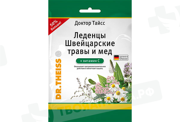 Леденцы Швейцарские травы и мёд+витС 75 г БАД/Доктор Тайсс