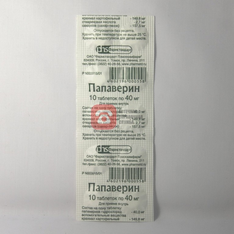 Папаверина г/хл 40 мг таблетки N10