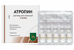 Атропин 1 мг/мл раствор д/ин 1мл ампулы N5