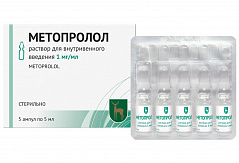 Метопролол 1 мг/мл раствор для внутривенного введения 5мл N5