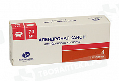 Фармакологическая группа: костной резорбции ингибитор - бисфосфонат. Фармакодинамика: Алендроновая кислота относится к бисфосфонатам – соединениям, которые на клеточном уровне локализуются преимущественно в зонах активной резорбции кости, под остеокластами. Алендроновая кислота не влияет на присоединение остеокластов, но угнетает их активность, тем самым ингибирует процесс резорбции костной ткани, не оказывая прямого влияния на процесс образования новой костной ткани. Во время лечения препаратом формируется нормальная костная ткань, в матрикс которой встраивается алендроновая кислота. Лечение алендроновой кислотой сокращает ремоделирование кости (то есть количество мест, в которых ремоделируется кость) при этом остеогенез в местах ремоделирования превышает резорбцию кости, что ведет к нарастающему росту костной массы.