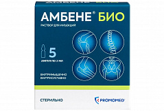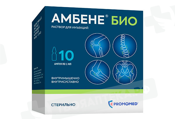 Фармакологическая группа: Репарации тканей стимулятор природного происхождения Код ATX: М09АХ Фармакологические свойства: АМБЕНЕ® Био - хондропротектор, активным компонентом которого является биоактивный экстракт из мелкой морской рыбы. Экстракт содержит мукополисахариды (хондроитин сульфат), аминокислоты, пептиды, ионы натрия, калия, кальция, магния, железа, меди и цинка. АМБЕНЕ® Био предотвращает разрушение макромолекулярных структур нормальных тканей, стимулирует процессы восстановления в интерстициальной ткани и ткани суставного хряща, что объясняет его обезболивающее действие. Противовоспалительное действие и регенерация тканей основаны на угнетении активности гиалуронидазы и нормализации биосинтеза гиалуроновой кислоты. Оба эти эффекта синергичны и обуславливают активацию восстановительных процессов в тканях (в частности, восстановление структуры хряща).