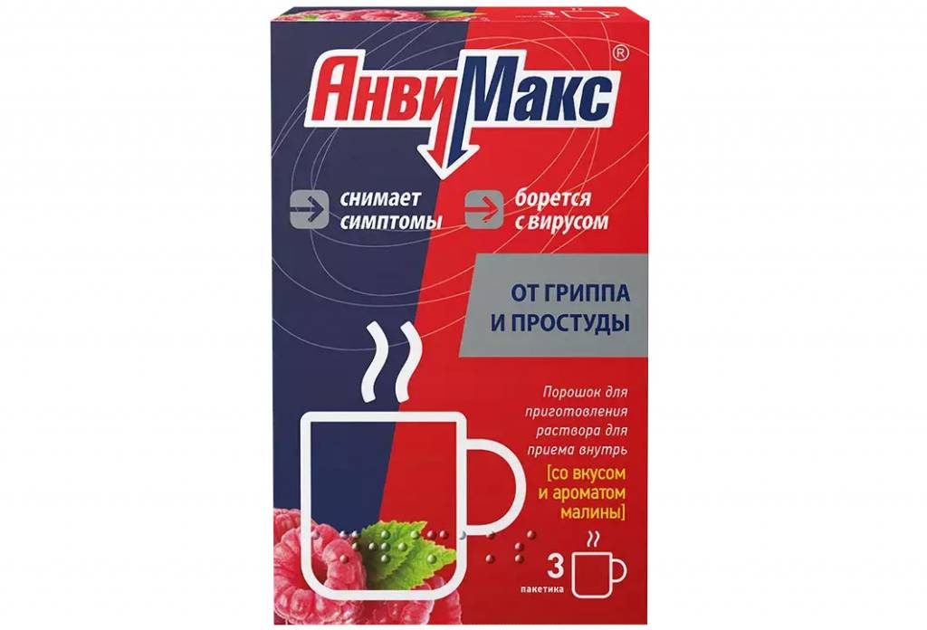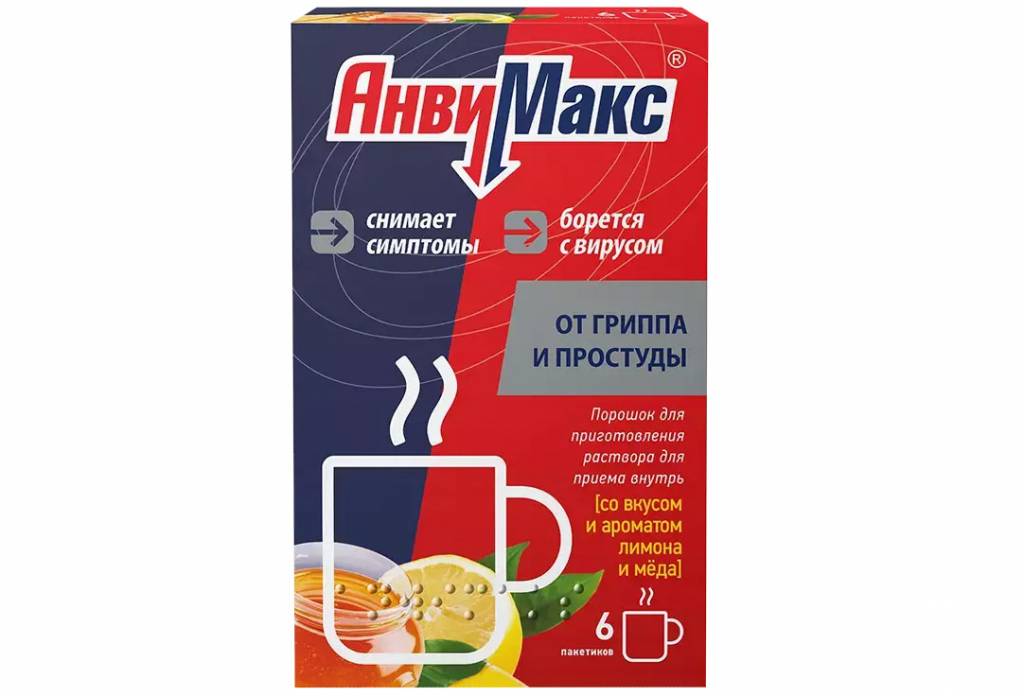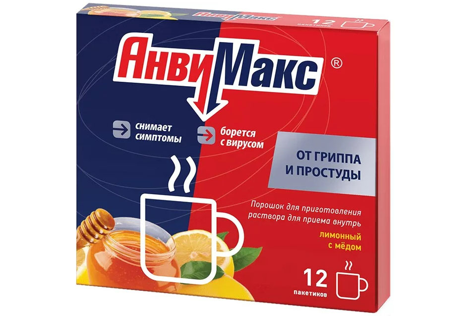 АнвиМакс обладает комбинированным действием и борется не только против симптомов, но и с причиной заболевания – вирусом гриппа у взрослых, благодаря своему составу:
