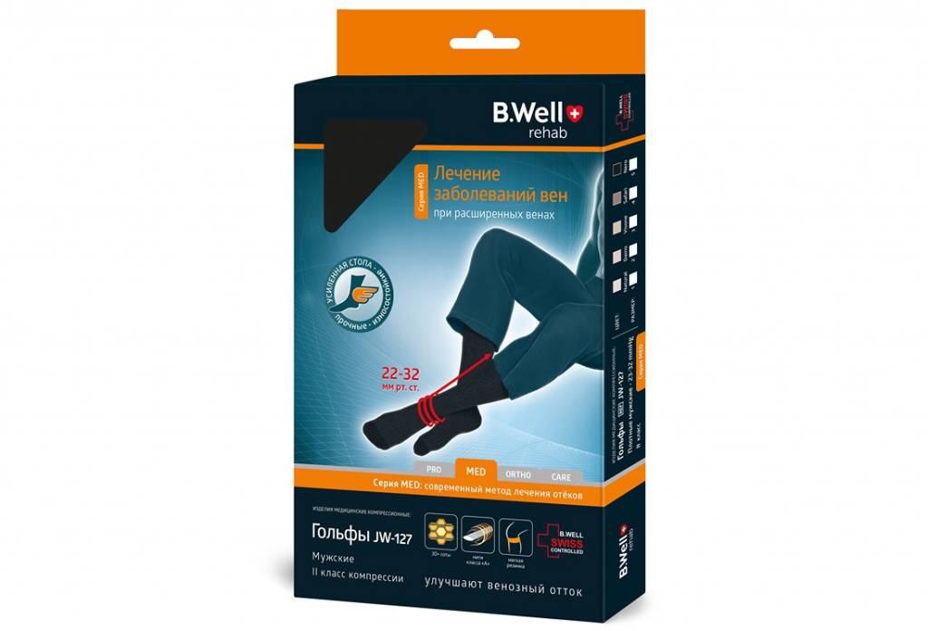 Гольфы B.Well Med компрессионные мужские II кл 23-32 мм р.4 Nero (черный) JW-127