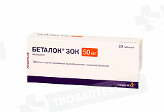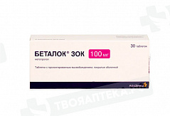 Фармакологическая группа: Бета1-адреноблокатор селективный Код АТХ: С07АВ02 Фармакодинамика: Метопролол – бета1-адреноблокатор, блокирующий бета1-рецепторы в дозах значительно меньших, чем дозы, требующиеся для блокирования бета2-рецепторов. Метопролол обладает незначительным мембраностабилизирующим эффектом и не проявляет активности частичного агониста. Метопролол снижает или ингибирует агонистическое действие, которое оказывают на сердечную деятельность катехоламины, выделяющиеся при нервных и физических стрессах. Это означает, что метопролол обладает способностью препятствовать увеличению частоты сердечных сокращений (ЧСС), минутного объема и усилению сократимости сердца, а также повышению артериального давления (АД), вызываемых резким выбросом катехоламинов. В отличие от обычных таблетированных лекарственных форм селективных бета1- адреноблокаторов (включая метопролол тартрат), при применении препарата Беталок® ЗОК наблюдается постоянная концентрация препарата в плазме крови и обеспечивается устойчивый клинический эффект (бета1-блокада) в течение более чем 24 часов. Вследствие отсутствия явных пиковых концентраций в плазме, клинически Беталок® ЗОК характеризуется лучшей бета1-селективностью по сравнению с обычными таблетированными формами бета1-адреноблокаторов. Кроме того, в значительной степени уменьшается потенциальный риск побочных эффектов, наблюдаемых при пиковых концентрациях препарата в плазме, например, брадикардия и слабость в ногах при ходьбе. Пациентам с симптомами обструктивных заболеваний легких при необходимости можно назначать Беталок® ЗОК в сочетании с бета2-адреномиметиками. При совместном использовании с бета2-адреномиметиками Беталок® ЗОК в терапевтических дозах в меньшей степени влияет на вызываемую бета2-адреномиметиками бронходилатацию, чем неселективные бета-адреноблокаторы. Метопролол в меньшей степени, чем неселективные бета- адреноблокаторы, влияет на продукцию инсулина и углеводный метаболизм. Влияние препарата на реакцию сердечно-сосудистой системы в условиях гипогликемии значительно менее выражено по сравнению с неселективными бета-адреноблокаторами. Применение препарата Беталок® ЗОК при артериальной гипертензии приводит к значительному снижению артериального давления в течение более чем 24 часов, как в положении лежа и стоя, так и при нагрузке. В начале терапии метопрололом отмечается увеличение сосудистого сопротивления. Однако при длительном приёме возможно снижение АД вследствие уменьшения сосудистого сопротивления при неизменном сердечном выбросе. В MERIT-HF (исследовании выживаемости при хронической сердечной недостаточности (класс II-IV по классификации NYHA) и сниженной фракции сердечного выброса (< 0,40), включавшем 3991 пациента) Беталок® ЗОК показал повышение выживаемости и снижение частоты госпитализаций. При длительном лечении пациенты достигали общего улучшения симптомов (по классам NYHA). Также терапия с применением Беталок® ЗОК показала повышение фракции выброса левого желудочка, снижение конечного систолического и конечного диастолического объемов левого желудочка. Качество жизни в период лечения препаратом Беталок® ЗОК не ухудшается или улучшается. Улучшение качества жизни при лечении препаратом Беталок® ЗОК наблюдали у пациентов после 