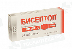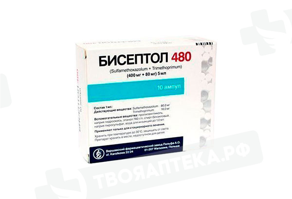 При пероральном приеме абсорбция быстрая и почти полная – 90%. После однократного приема 160 мг триметоприма + 800 мг сульфаметоксазола максимальная концентрация (Cmax) триметоприма – 1,5-3 мкг/мл, а сульфаметоксазола – 40-80 мкг/мл. Сmax в плазме крови достигается через 1-4 часа; терапевтический уровень концентрации сохраняется в течение 7 часов после однократного приема. При многократном приеме с интервалом в 12 часов минимальные равновесные концентрации (Css) стабилизируются в пределах 1,3-2,8 мкг/мл для триметоприма и 32-63 мкг/мл для сульфаметоксазол. Css препарата достигается в течение 2-3 дней. Хорошо распределяется в организме. Объем распределения (Vd) триметоприма составляет около 130 л, сульфаметоксазола – около 20 л. Проникает через гематоэнцефалический барьер, плацентарный барьер и в грудное молоко. В легких и моче создает концентрации, превышающие содержание в плазме. Триметоприм несколько лучше, чем сульфаметоксазол проникает в невоспаленную ткань предстательной железы, семенную жидкость, секрет влагалища, слюну, здоровую и воспаленную ткань легких, желчь, в то время как в спинномозговую жидкость и водянистую влагу глаза оба компонента препарата проникают одинаково. Большие количества триметоприма и несколько меньшие количества сульфаметоксазола поступают из кровотока в интерстициальную и другие экстравазальные жидкости организма, при этом концентрации триметоприма и сульфаметоксазола превышают МПК для большинства патогенных микроорганизмов. Связь с белками плазмы – 66% у сульфаметоксазола, у триметоприма – 45%. Метаболизируется в печени. Некоторые метаболиты обладают противомикробной активностью. Сульфаметоксазол метаболизируется преимущественно путем N4- ацетилирования и, в меньшей степени, конъюгацией с глюкуроновой кислотой. Выводится почками в виде метаболитов (80% в течение 72 ч) и в неизмененном виде (20% сульфаметоксазола, 50% триметоприма); незначительное количество – через кишечник. Оба вещества, а также их метаболиты, выводятся почками, как путем клубочковой фильтрации, так и канальцевой секреции, вследствие чего концентрации обоих активных веществ в моче значительно выше, чем в крови. Период полувыведения (T1/2) сульфаметоксазола – 9-11 ч, триметоприма – 10-12 ч, у детей – существенно меньше и зависит от возраста: до 1 года – 7-8 ч, 1-10 лет – 5-6 ч. У пожилых пациентов и/или пациентов с нарушением функции почек (клиренс креатинина (КК) 15-20 мл/мин) T1/2 увеличивается, что требует коррекции дозы.