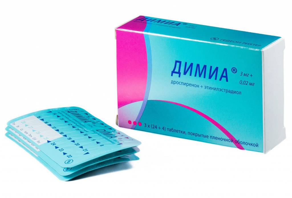Препарат Димиа является комбинированным монофазным пероральным контрацептивным средством, содержащим дроспиренон и этинилэстрадиол. По своему фармакологическому профилю дроспиренон близок к натуральному прогестерону: не обладает эстрогенной, глюкокортикоидной и антиглюкокортикоидной активностью и характеризуется выраженным антиандрогенным и умеренным антиминералокортикоидным действием. Контрацептивный эффект основывается на взаимодействии различных факторов, важнейшими из которых являются торможение овуляции, увеличение вязкости секрета шейки матки и изменение эндометрия. Индекс Перля, показатель, отражающий частоту наступления беременности у 100 женщин репродуктивного возраста в течение года применения контрацептива, составляет менее 1.