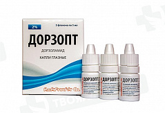 Фармакологическая группа: Средства, применяемые в офтальмологии; противоглаукомные препараты и миотические средства; бета-адреноблокаторы Код ATX: S01ED51 Фармакодинамика: Механизм действия: Препарат содержит два действующих вещества: дорзоламида гидрохлорид и тимолола малеат. Каждый из этих двух компонентов снижает повышенное внутриглазное давление (ВГД) за счет снижения секреции водянистой влаги, но посредством разных механизмов действия. Дорзоламида гидрохлорид является селективным ингибитором карбоангидразы II (СА-II) человека. Ингибирование карбоангидразы в цилиарных отростках глаза приводит к снижению секреции водянистой влаги, предположительно за счет уменьшения образования бикарбонатных ионов, что в свою очередь приводит к замедлению транспорта натрия и жидкости. Тимолола малеат является неселективным бета-адреноблокатором. Точный механизм действия тимолола малеата по снижению ВГД в настоящее время четко не установлен, хотя исследования с флуоресцеином и тонографические исследования показывают, что действие преимущественно может иметь отношение к снижению секреции водянистой влаги. Однако в некоторых исследованиях наблюдалось небольшое увеличение активации оттока водянистой влаги. Комбинированный эффект этих двух активных веществ приводит к дополнительному снижению ВГД по сравнению с эффектом каждого вещества, применяемого отдельно. После местного применения препарата повышенное ВГД снижается независимо от того, связано оно с глаукомой или нет. Повышенное ВГД является основным фактором риска в патогенезе повреждения зрительного нерва и глаукоматозного сужения полей зрения. Препарат снижает ВГД без общих для миотических препаратов побочных действий, таких как никталопия, спазм аккомодации и сужение зрачков. Клинические эффекты: Клинические исследования продолжительностью до 15 месяцев проводились для сравнения влияния препарата на снижение ВГД при приеме два раза в день (утром и перед сном) с одновременным и раздельным применением 0,5 % тимолола и 2,0 % дорзоламида у пациентов с глаукомой или офтальмо гипертензией, для которых подходила комбинированная терапия. Исследование включало как ранее не леченных пациентов, так и пациентов, у которых монотерапия тимололом была не эффективна. Большинство пациентов до включения в исследование лечились местными бета-адреноблокаторами. При анализе комбинированных исследований эффект на ВГД при применении препарата два раза в день был более выражен, чем гипотензивный эффект монотерапии 2 % дорзоламидом три раза в день или 0,5 % тимололом два раза в день. Снижение ВГД при применении препарата два раза в день было эквивалентно комбинированной терапии дорзоламидом два раза в день и тимололом два раза в день. Такой же эффект был продемонстрирован при применении препарата два раза в день при измерении в различные моменты времени в течение суток, и этот эффект сохранялся при продолжительном применении. Дети: 3-месячное контролируемое исследование было проведено с основной целью документально зафиксировать безопасность 2% офтальмологического раствора дорзоламида гидрохлорида у детей в возрасте до 6 лет. В этом исследовании 30 пациентов в возрасте от 2 до 6 лет, у которых не удалось достичь снижения внутриглазного давления с помощью монотерапии дорзоламидом или