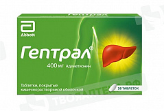 Таблетки покрыты пленочной оболочкой, растворяющейся только в кишечнике, благодаря чему адеметионин высвобождается в двенадцатиперстной кишке. Всасывание: Максимальные концентрации (Сmах) адеметионина в плазме являются дозозависимыми и составляют 0,5-1 мг/л через 3-5 часов после однократного приема внутрь в дозах от 400 до 1000 мг. Сmах адеметионина в плазме снижаются до исходного уровня в течение 24 часов. Биодоступность адеметионина при пероральном приеме увеличивается при приеме препарата натощак. Распределение: Связь с белками плазмы крови - незначительная, составляет < 5 %. Проникает через гематоэнцефалический барьер. Отмечается значительное увеличение концентрации адеметионина в спинномозговой жидкости. Метаболизм: Метаболизируется в печени. Процесс образования, расходования и повторного образования адеметионина называется циклом адеметионина. На первом этапе этого цикла адеметионинзависимые метилазы используют адеметионин в качестве субстрата для продукции S-аденозилгомоцистеина, который затем гидролизуется до гомоцистеина и аденозина с помощью S-аденозилгомоцистеингидролазы. Гомоцистеин, в свою очередь, подвергается обратной трансформации до метионина путем переноса метильной группы от 5-метилтетрагидрофолата. В итоге метионин может быть преобразован в адеметионин, завершая цикл. Выведение: Период полувыведения (Т1/2) - 1,5 ч. Выводится почками. В исследованиях у здоровых добровольцев при приеме внутрь меченного (метил 14С) Б-аденозил-Ь-метионина в моче было обнаружено 15,5 ± 1,5 % радиоактивности через 48 часов, а в кале - 23,5 ± 3,5 % радиоактивности через 72 часа. Таким образом, около 60 % было задепонировано.