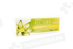 Фармакологическая группа: Противоаллергическое средство-Н1 гистаминовых рецепторов блокатор Код АТХ R06AX22 Фармакодинамика: Эбастин является антагонистом Н1- гистаминовых рецепторов длительного действия. После приема препарата внутрь выраженное противоаллергическое действие начинается через 1 ч и длится более 48 ч. После 5-дневного курса лечения препаратом Кестин антигистаминная активность сохраняется в течение 72 ч за счет действия активных метаболитов. При длительном приеме сохраняется высокий уровень блокады периферических Н1-гистаминовых рецепторов без развития тахифилаксии. Препарат не оказывает выраженного антихолинергического и седативного эффекта, не проникает через гематоэнцефалический барьер. Не отмечено влияния препарата Кестин на интервал ОТ на ЭКГ в дозе 100 мг - дозе, превышающей рекомендованную суточную дозу (20 мг) в 5 раз.