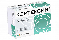 Фармакологическая группа: Ноотропное средство Код АТX: N06BX. Фармакодинамика: Кортексин - комплекс водорастворимых полипептидных фракций с молекулярной массой не более 10 000 Да. КОРТЕКСИН® содержит комплекс низкомолекулярных водорастворимых полипептидных фракций, проникающих через гематоэнцефалический барьер непосредственно к нервным клеткам. Препарат оказывает ноотропное, нейропротекторное, антиоксидантное и тканеспецифическое действие. Ноотропное - улучшает высшие функции головного мозга, процессы обучения и памяти, концентрацию внимания, устойчивость при различных стрессовых воздействиях. Нейропротекторное - защищает нейроны от поражения различными эндогенными нейротоксическими факторами (глутамат, ионы кальция, свободные радикалы), уменьшает токсические эффекты психотропных веществ. Антиоксидантное - ингибирует перекисное окисление липидов в нейронах, повышает выживаемость нейронов в условиях оксидативного стресса и гипоксии. Тканеспецифическое - активирует метаболизм нейронов центральной и периферической нервной системы, репаративные процессы, способствует улучшению функций коры головного мозга и общего тонуса нервной системы. Механизм действия лекарственного препарата КОРТЕКСИН® обусловлен активацией пептидов нейронов и нейротрофических факторов мозга; оптимизацией баланса метаболизма возбуждающих и тормозных аминокислот, дофамина, серотонина; ГАМКергическим воздействием; снижением уровня пароксизмальной судорожной активности мозга, способностью улучшать его биоэлектрическую активность; предотвращением образования свободных радикалов (продуктов перекисного окисления липидов).
