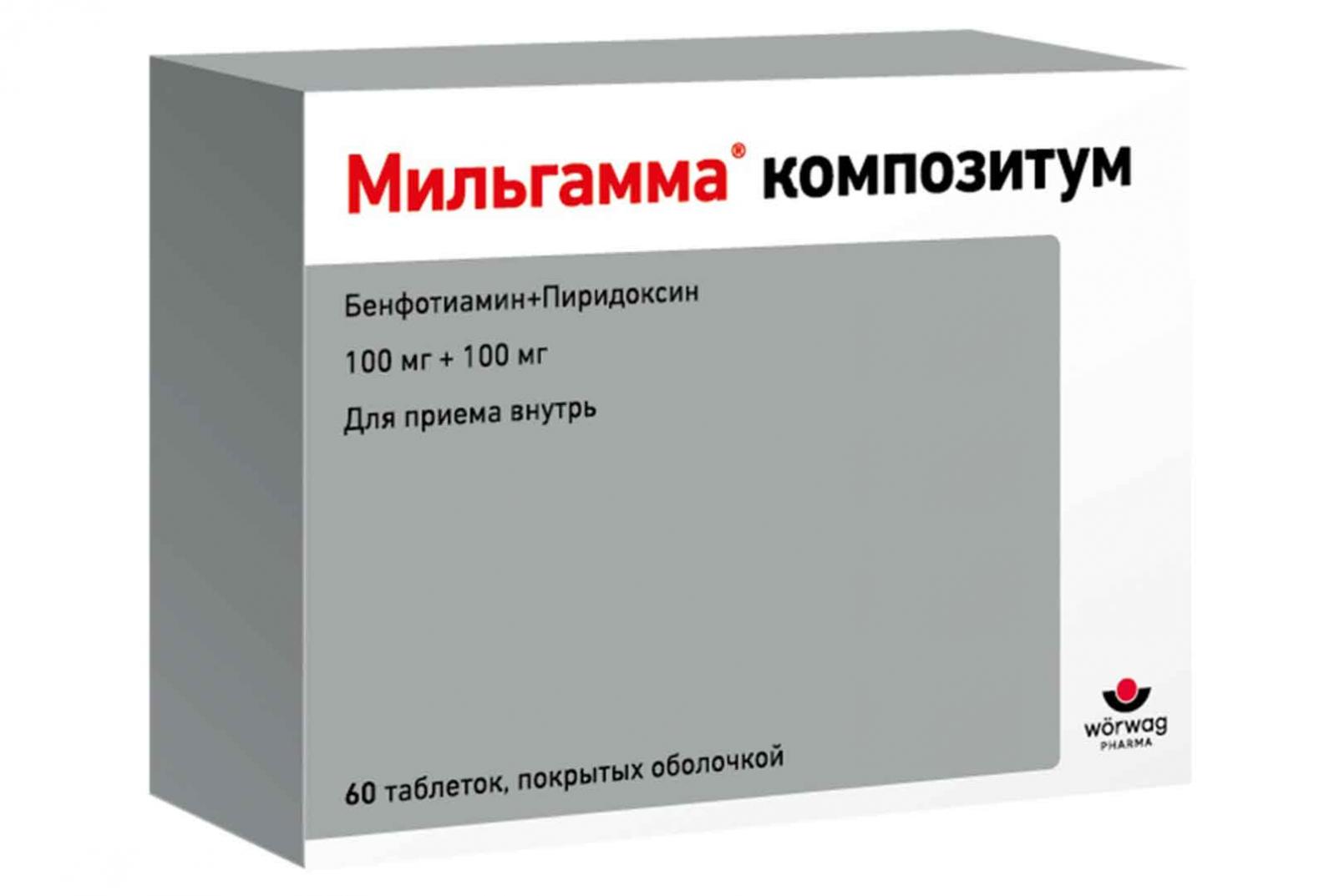 1 таблетка, покрытая оболочкой, содержит: активные вещества: бенфотиамин 100 мг, пиридоксина гидрохлорид 100 мг. вспомогательные вещества: состав ядра таблетки, покрытой оболочкой: целлюлоза микрокристаллическая - 222,0 мг, повидон (значение К=30) - 8,0 мг, высоко цепочечные парциальные глицериды - 5,0 мг, кремния диоксид коллоидный - 7,0 мг, кроскармеллоза натрия - 3,0 мг, тальк - 5,0 мг; состав оболочки: шеллак 37 % в пересчете на сухое вещество - 3,0 мг, сахароза - 92,399 мг, кальция карбонат - 91,675 мг, тальк - 55,130 мг, акации камедь - 14,144 мг, крахмал кукурузный - 10,230 мг, титана диоксид (Е 171) - 14,362 мг, кремния диоксид коллоидный - 6,138 мг, повидон (значение К=30) - 7,865 мг, макрогол-6000 - 2,023 мг, глицерол 85 % в пересчете на сухое вещество - 2,865 мг, полисорбат- 80 - 0,169 мг, воск горный гликолевый - 0,120 мг.