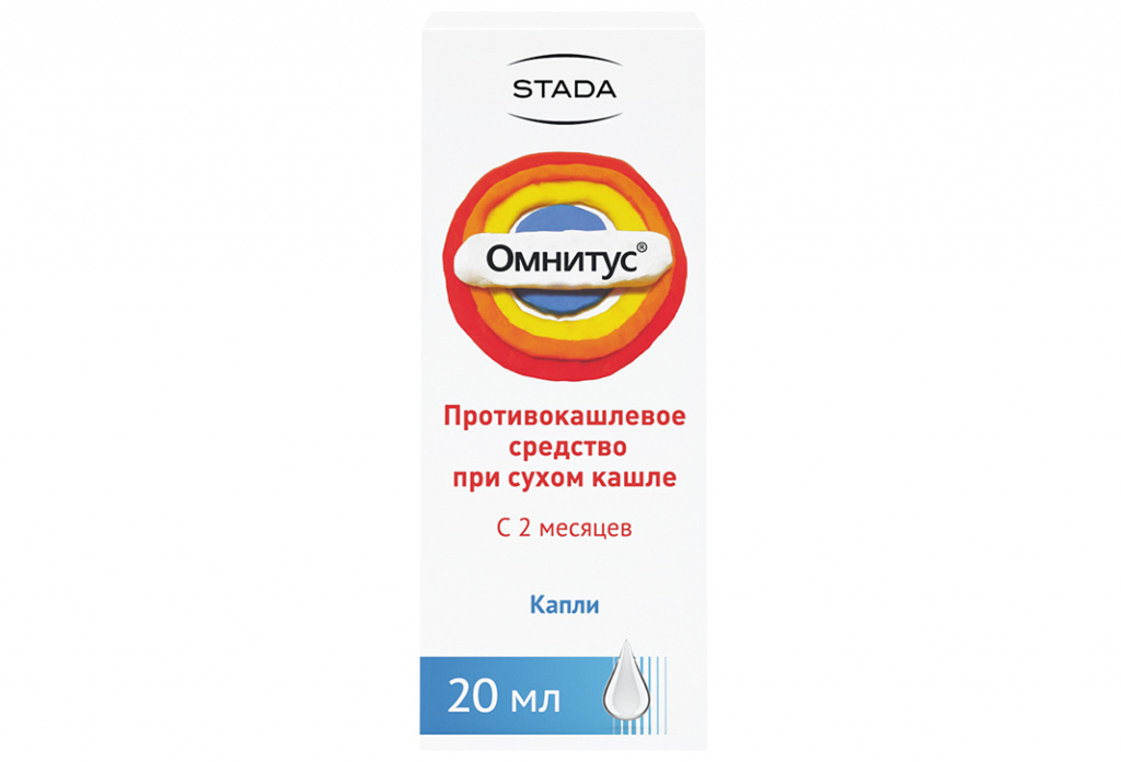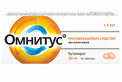 Фармакологическая группа: Противокашлевое средство центрального действия Код АТХ R05DB13 Фармакологические свойства: Противокашлевое средство, оказывает отхаркивающее, умеренное бронходилатирующее и противовоспалительное действие. Бутамирата цитрат не является ни химически, ни фaрмaкологически родственным с aлкaлоидaми опия и обладает прямым влиянием на кашлевой центр, улучшает показатели спирометрии и оксигенацию крови. Бутамират, действующее вещество препарата Омнитус®, является противокашлевым средством центрального действия. Не относится к aлкaлоидaм опия ни химически, ни фaрмaкологически. Не формирует зависимости или привыкания. Подавляет кашель, обладая прямым влиянием на кашлевой центр. Оказывает бронходилатирующий эффект (расширяет бронхи). Способствует облегчению дыхания, улучшая показатели спирометрии (снижает сопротивление дыхательных путей) и оксигенации крови (насыщает кровь кислородом).