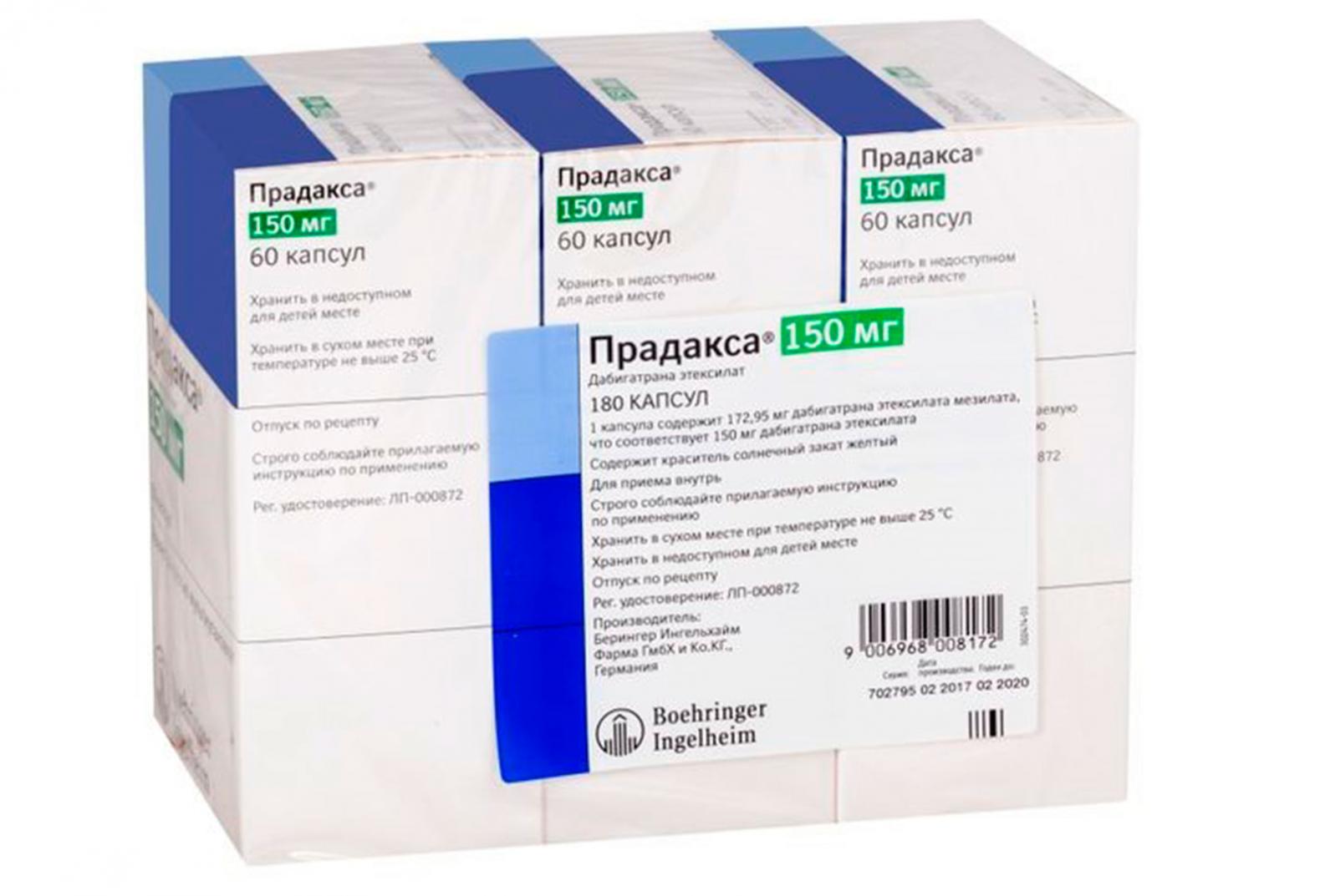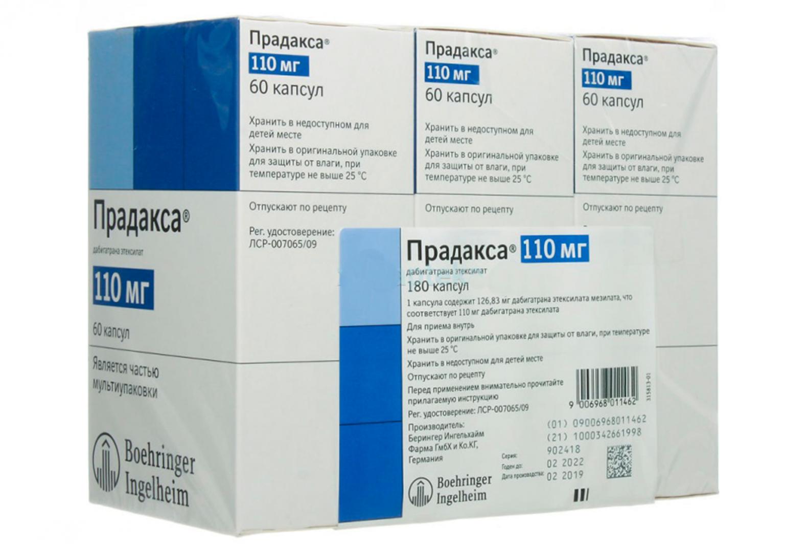 Капсулы следует принимать внутрь, 1 или 2 раза в день независимо от времени приема пищи, запивая стаканом воды для облегчения прохождения препарата в желудок. Не следует вскрывать капсулу. Особые указания при изъятии капсул из блистера: оторвите один индивидуальный блистер от блистерупаковки по линии перфорации; выньте капсулу из блистера, отслаивая фольгу; не выдавливайте капсулы через фольгу. Применение у взрослых: Профилактика венозных тромбоэмболий (ВТЭ) у пациентов после ортопедических операций: рекомендованная доза составляет 220 мг 1 раз в сутки (2 капсулы по 110 мг). У пациентов с умеренным нарушением функции почек в связи с риском кровотечений рекомендованная доза составляет 150 мг 1 раз в сутки (2 капсулы по 75 мг). Профилактика ВТЭ после эндопротезирования коленного сустава: применение препарата ПРАДАКСА следует начинать через 1-4 ч после завершения операции с приема 1 капсулы (110 мг) с последующим увеличением дозы до 2 капсул (220 мг) однократно в сутки в течение последующих 10 дней. Если гемостаз не достигнут, лечение следует отложить. Если лечение не началось в день операции, терапию следует начинать с приема 2 капсул (220 мг) однократно в сутки Профилактика ВТЭ после эндопротезирования тазобедренного сустава: применение препарата ПРАДАКСА следует начинать через 1-4 ч после завершения операции с приема 1 капсулы (110 мг) с последующим увеличением дозы до 2 капсул (220 мг) однократно в сутки в течение последующих 28-35 дней. Если гемостаз не достигнут, лечение следует отложить. Если лечение не началось в день операции, терапию следует начинать с приема 2 капсул (220 мг) однократно в сутки. Профилактика инсульта, системных тромбоэмболий и снижение сердечно-сосудистой смертности у пациентов с фибрилляцией предсердий: рекомендуется применение препарата ПРАДАКСА в суточной дозе 300 мг (1 капсула по 150 мг 2 раза в день). Терапия должна продолжаться пожизненно. Лечение острого тромбоза глубоких вен (ТГВ) и/или тромбоэмболии легочной артерии (ТЭЛА) и профилактика смертельных исходов, вызываемых этими заболеваниями: рекомендуется применение препарата ПРАДАКСА в суточной дозе 300 мг (1 капсула по 150 мг 2 раза в день) после парентерального лечения антикоагулянтом, проводящимся в течение, как минимум, 5 дней. Терапия должна продолжаться до 6 месяцев. Профилактика рецидивирующего тромбоза глубоких вен (ТГВ) и/или тромбоэмболии легочной артерии (ТЭЛА) и смертельных исходов, вызываемых этими заболеваниями: рекомендуется применение препарата ПРАДАКСА в суточной дозе 300 мг (1 капсула по 150 мг 2 раза в день). Терапия может продолжаться пожизненно, в зависимости от индивидуальных факторов риска Применение в особых группах пациентов Применение у детей У пациентов до 18 лет эффективность и безопасность препарата ПРАДАКСА не изучали, поэтому применение у детей не рекомендуется (см. раздел «Противопоказания»). Нарушение функции почек Перед терапией, во избежание назначения препарата пациентам с тяжелыми нарушениями функции почек (КК менее 30 мл/мин), необходимо предварительно оценить клиренс креатинина. В связи с отсутствием данных по применению препарата у пациентов с тяжелыми нарушениями функции почек (КК менее 30 мл/мин) применение препарата ПРАДАКСА противопоказано (см. раздел «Противопоказания»). Функция почек должна оцениваться в процессе лечения, когда воз