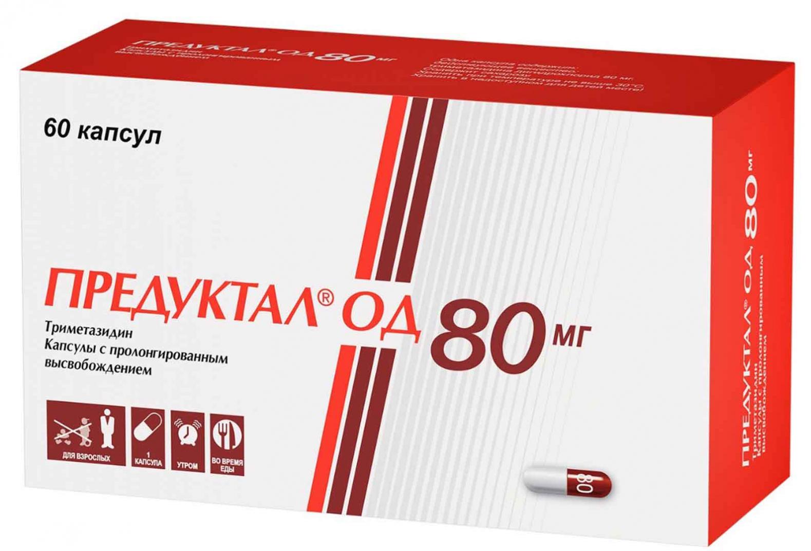 Режим дозирования: Дозировка составляет 1 капсулу триметазидина 80 мг 1 раз в сутки, утром, во время завтрака. Оценка пользы от лечения должна быть проведена после трех месяцев приема препарата. Прием триметазидина следует прекратить, если за это время улучшение не наступило. Пациенты с нарушением функции почек: У пациентов с умеренным нарушением функции почек (клиренс креатинина 30-60 мл/мин) рекомендуется снижение дозы наполовину, т.е. по 1 таблетке, содержащей 35 мг триметазидина, один раз в сутки, утром во время завтрака. Пациенты пожилого возраста: У пациентов пожилого возраста может наблюдаться повышение экспозиции триметазидина из-за возрастного снижения функции почек (см. раздел 5.2). У пациентов с умеренным нарушением функции почек (клиренс креатинина 30-60 мл/мин) рекомендуется снижение дозы наполовину, т.е. по 1 таблетке, содержащей 35 мг триметазидина, один раз в день, утром во время завтрака. Подбор дозы у пациентов пожилого возраста должен проводиться с осторожностью. Дети: Безопасность и эффективность применения триметазидина у пациентов младше 18 лет не установлены. Данные отсутствуют. Способ применения: Лекарственный препарат Предуктал ОД следует принимать внутрь, не открывая капсулу, 1 раз в сутки, утром, во время завтрака.