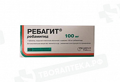 Активное вещество: 1 таблетка содержит: ребамипид 100,00 мг Вспомогательные вещества: Маннитол, кроскармеллоза натрия, крахмал прежелатинизированный, натрия лаурилсульфат, лимонная кислота, тальк, магния стеарат пленочная оболочка: опадрай белый 03B28796 (гипромеллоза 6 cP, титана диоксид, макрогол 400).