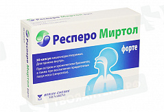 Активное вещество: 1 капсула содержит: миртол стандартизированный 300 мг на минимальное содержание: лимонена 75мг цинеола 75 мг, альфа-пинена 20 мг. Вспомогательные вещества: Рапсовое масло. Капсула: желатин, глицерол 85 %, сорбитол, 13 % раствор кислоты хлористоводородной. Оболочка капсулы: гипромеллозы ацетата сукцинат, триэтилцитрат, натрия лаурилсульфат, тальк, декстрин, аммония глицирризинат.
