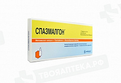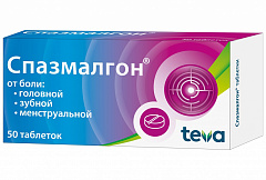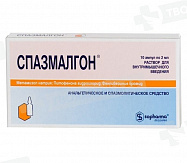 Спазмалгон®-комбинированный препарат, в состав которого входят: ненаркотический анальгетик метамизол натрия, миотромное спазмолитическое средство питофенон и м-холиноблокирующее средство фенпивериния бромид. Сочетание компонентов препарата приводит к взаимному усилению их фармакологического действия: облегчению боли, расслаблению гладких мышц и снижению повышенной температуры тела. Круглые, плоские таблетки с фаской и с риской с одной стороны, белого или почти белого цвета.