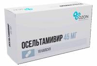 Фармакологическая группа: Ингибиторы нейраминидазы. Фармакодинамика: Механизм действия Противовирусный препарат. Осельтамивир является пролекарством, его активный метаболит (осельтамивира карбоксилат, ОК) - эффективный и селективный ингибитор нейраминидазы вирусов гриппа типа А и В - фермента, катализирующего процесс высвобождения вновь образованных вирусных частиц из инфицированных клеток, их проникновения в неинфицированные клетки эпителия дыхательных путей и дальнейшего распространения вируса в организме. Тормозит рост вируса гриппа in vitro и подавляет репликацию вируса и его патогенность in vivo, уменьшает выделение вирусов гриппа А и В из организма. Концентрация ОК, необходимая для ингибирования нейраминидазы на 50% (IC50), составляет 0.1-1.3 нМ для вируса гриппа А и 2.6 нМ для вируса гриппа В. Медиана значений IC50 для вируса гриппа В несколько выше и составляет 8.5 нМ. Клиническая эффективность В проведенных исследованиях Тамифлю® не оказывал влияния на образование противогриппозных антител, в том числе на выработку антител в ответ на введение инактивированной вакцины против гриппа. Исследования естественной гриппозной инфекции В клинических исследованиях, проведенных во время сезонной инфекции гриппа, пациенты начинали получать Тамифлю® не позднее 40 ч после появления первых симптомов гриппозной инфекции. 97% пациентов были инфицированы вирусом гриппа А и 3% пациентов – вирусом гриппа В. Тамифлю® значительно сокращал период клинических проявлений гриппозной инфекции (на 32 ч). У пациентов с подтвержденным диагнозом гриппа, принимавших Тамифлю®, тяжесть заболевания, выраженная как площадь под кривой для суммарного индекса симптомов, была на 38% меньше по сравнению с пациентами, получавшими плацебо. Более того, у молодых пациентов без сопутствующих заболеваний Тамифлю® снижал примерно на 50% частоту развития осложнений гриппа, требующих применения антибиотиков (бронхита, пневмонии, синусита, среднего отита). Были получены четкие доказательства эффективности препарата в отношении вторичных критериев эффективности, относящихся к антивирусной активности: Тамифлю® вызывал как укорочение времени выделения вируса из организма, так и уменьшение площади под кривой «вирусные титры-время». Данные, полученные в исследовании по терапии Тамифлю® у больных пожилого и старческого возраста, показывают, что прием Тамифлю® в дозе 75 мг 2 раза в сутки в течение 5 дней сопровождался клинически значимым уменьшением медианы периода клинических проявлений гриппозной инфекции, аналогичным таковому у взрослых пациентов более молодого возраста, однако различия не достигли статистической значимости. В другом исследовании больные гриппом старше 13 лет, имевшие сопутствующие хронические заболевания сердечно-сосудистой и/или дыхательной систем, получали Тамифлю® в том же режиме дозирования или плацебо. Отличий в медиане периода до уменьшения клинических проявлений гриппозной инфекции в группах Тамифлю® и плацебо не было, однако период повышения температуры при приеме Тамифлю® сокращался примерно на 1 день. Доля пациентов, выделяющих вирус на 2-ой и 4-ый день, становилась значительно меньше. Профиль безопасности Тамифлю® у пациентов группы риска не отличался от такового в общей популяции взрослых пациентов. Лечение гриппа у детей У детей в