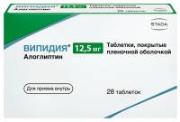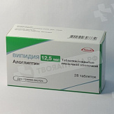 Препарат принимают внутрь. Рекомендуемая доза препарата Випидия® составляет 25 мг один раз в сутки в качестве монотерапии или в дополнение к метформину, тиазолидиндиону, производным сульфонилмочевины или инсулину, или в качестве трехкомпонентной комбинации с метформином, тиазолидиндионом или инсулином. Препарат Випидия® может приниматься независимо от приема пищи. Таблетки следует проглатывать целиком, не разжевывая, запивая водой. В случае если пациент пропустил прием препарата Випидия®, он должен принять пропущенную дозу как можно быстрее. Недопустим прием двойной дозы препарата Випидия® в один и тот же день. При назначении препарата Випидия® в дополнение к метформину или тиазолидиндиону дозу последних препаратов следует оставить без изменения. При комбинировании препарата Випидия® с производным сульфонилмочевины или инсулином дозу последних целесообразно уменьшить для снижения риска развития гипогликемии. В связи с риском развития гипогликемии следует соблюдать осторожность при назначении трехкомпонентной комбинации препарата Випидия® с метформином и тиазолидиндионом. В случае развития гипогликемии возможно рассмотреть уменьшение дозы метформина или тиазолидиндиона. Эффективность и безопасность алоглиптина при приеме в тройной комбинации с метформином и производным сульфонилмочевины окончательно не установлены. Пациенты с почечной недостаточностью Пациентам с легкой почечной недостаточностью (клиренс креатинина от >50 до <80 мл/мин) коррекции дозы препарата Випидия® не требуется. У пациентов с почечной недостаточностью средней степени тяжести (клиренс креатинина от >30 до <50 мл/мин) доза препарата Випидия® составляет 12,5 мг один раз в сутки. Алоглиптин не должен применяться у пациентов с тяжелой почечной недостаточностью и пациентов с терминальной стадией почечной недостаточности, нуждающихся в гемодиализе (клиренс креатинина от Пациенты с печеночной недостаточностью Не требуется коррекции дозы препарата Випидия® у пациентов с печеночной недостаточностью легкой и средней степени тяжести (от 5 до 9 баллов по шкале Чайлда- Пью). Препарат не исследовался у пациентов с тяжелой печеночной недостаточностью (более 9 баллов по шкале Чайлда-Пью), поэтому он не должен применяться у данной группы пациентов. Пациенты старше 65 лет Не требуется коррекции дозы препарата Випидия® у пациентов старше 65 лет. Тем не менее следует особенно тщательно подбирать дозу алоглиптина в связи с потенциальной возможностью снижения функции почек у данной группы пациентов.