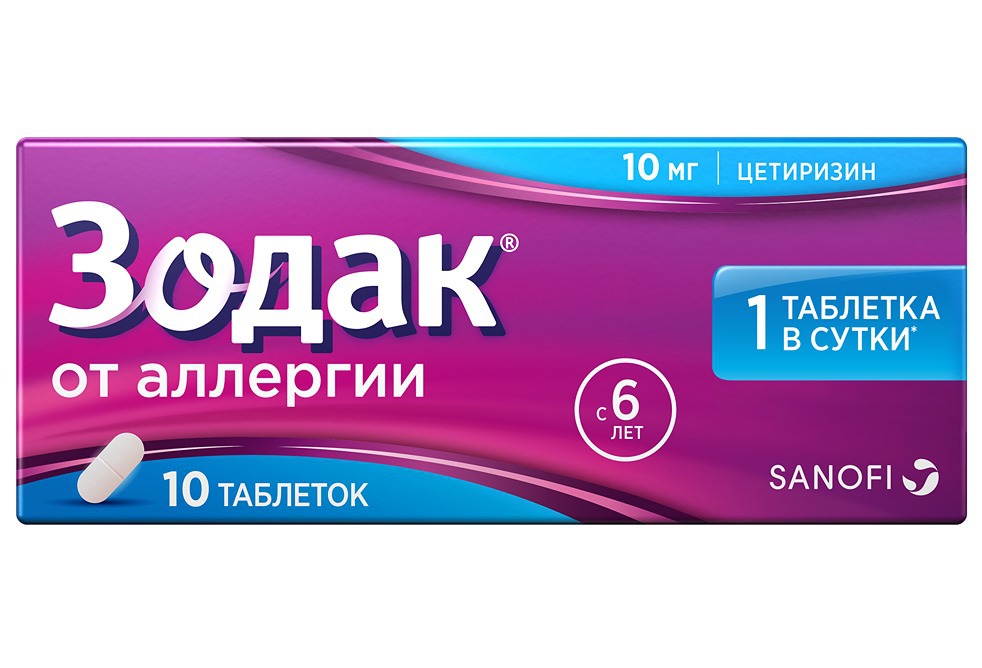 Препарат Зодак® применяется по назначению врача во избежание осложнений. Внутрь, независимо от приёма пищи. Взрослым и детям в возрасте старше 12 лет: препарат Зодак® обычно назначают по 1 таблетке, покрытой оболочкой (=10 мг цетиризина), один раз в сутки. Детям в возрасте от 6 до 12 лет: препарат Зодак® обычно назначают по 1 таблетке, покрытой оболочкой (=10 мг цетиризина), один раз в сутки или по 1/2 таблетки, покрытой оболочкой (= 5 мг цетиризина), два раза в сутки, утром и вечером. Пациенты с нарушением функции почек: при назначении препарата пациентам с нарушением функции почек в случае, когда альтернативное лечение не может быть назначено, дозу следует корректировать в зависимости от величины КК, поскольку цетиризин выводится из организма в основном почками. Показатель КК для мужчин можно рассчитать исходя из концентрации сывороточного креатинина в плазме крови по следующей формуле: КК (мл/мин)=[(140 - возраст (годы)) х масса тела (кг)]/ (72 х ККсыворот (мг/дл)); КК для женщин можно рассчитать, умножив полученное значение на коэффициент 0,85. Взрослым пациентам с нарушением функции почек дозирование осуществляют следующим образом: КК (мл/мин) более 80-доза 10 мг/сут; КК (мл/мин) 50-79-доза 10 мг/сут; КК (мл/мин) 30-49-доза 5 мг/сут; КК (мл/мин) менее 30-доза 5 мг через день; КК (мл/мин) менее 10-препарат противопоказан. Пациентам с нарушением только функции печени коррекции режима дозирования не требуется. При случайном пропуске времени приёма препарата, очередную дозу следует принять при первой же возможности. В том случае, если приближается время очередного приёма препарата, очередную дозу следует принять по графику, не увеличивая общей дозы. Препарат Зодак® можно принимать вне зависимости от времени приёма пищи. Таблетки, покрытые оболочкой, следует проглатывать целиком, запивая небольшим количеством воды.